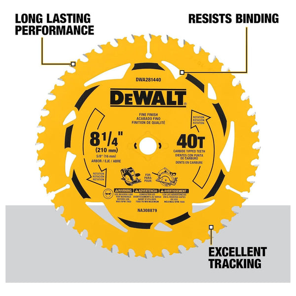 Bienvenid@ a RENO - REFACCIONES EXPRESS DEL NORTE Disco Sierra Circular 8 1/4" 40 dientes de la marca DEWALT modelo DWA281440. - Larga duración: ofrece cortes transversales suaves con ingeniería de última generación. - Rendimiento...