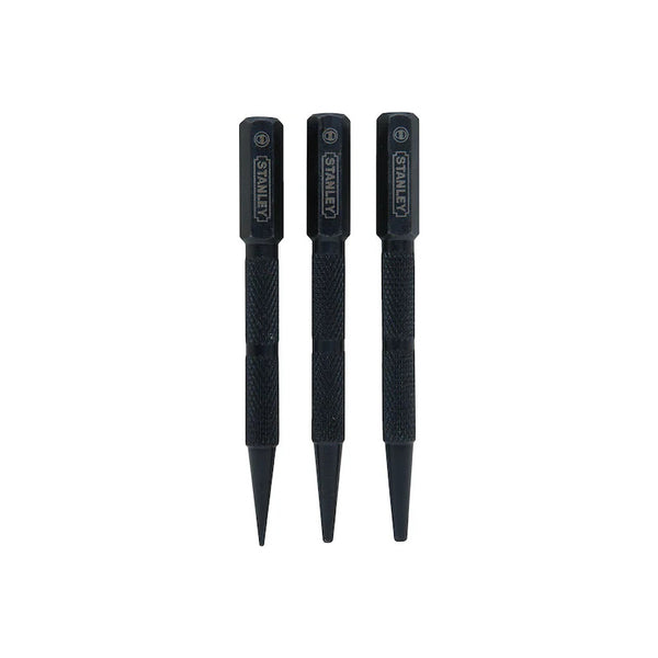 Bienvenid@ a RENO - REFACCIONES EXPRESS DEL NORTE Juego de Punzones de 3 piezas de la marca STANLEY modelo 58-230. - Punta cónica y biselada. - Cabeza cuadrada y cuerpo redondo. - Aleación de acero...