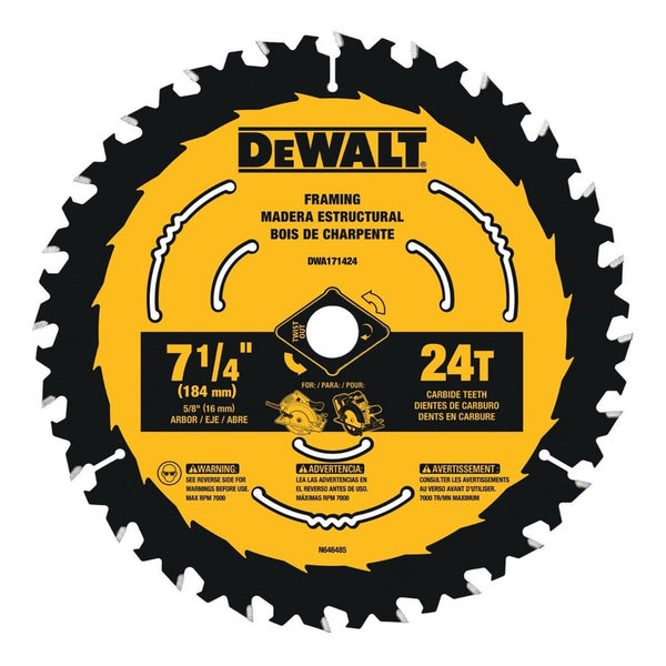 Bienvenid@ a RENO - REFACCIONES EXPRESS DEL NORTE Disco de Sierra Carburo 7-1/4 con 24 Dientes de la marca Dewalt modelo DWA171424 - Para madera estructural. - Arbor o Eje: 5/8 - 24 Dientes de...