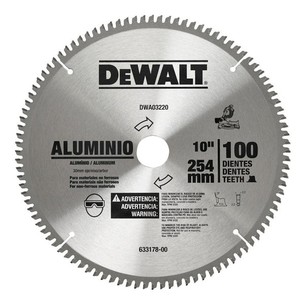 Bienvenid@ a RENO - REFACCIONES EXPRESS DEL NORTE Disco de 10 pulgadas de la marca DEWALT para aluminio modelo DWA03220 Características - Medida: 10 Pulg (254 mm) - Uso: Aluminio - Para materiales no ferrosos...
