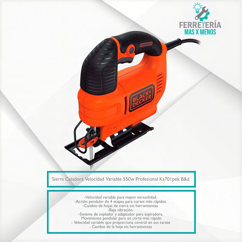Sierra Caladora Accion Pendular 500W VV de la marca BLACK+DECKER, modelo KS701PEK-B3.