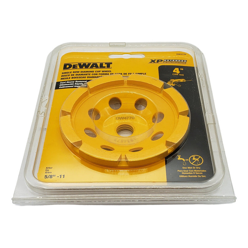 Disco de diamante con forma de copa 4 x 5/8 de pulgada de la marca DEWALT modelo DW4770.